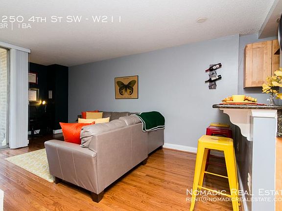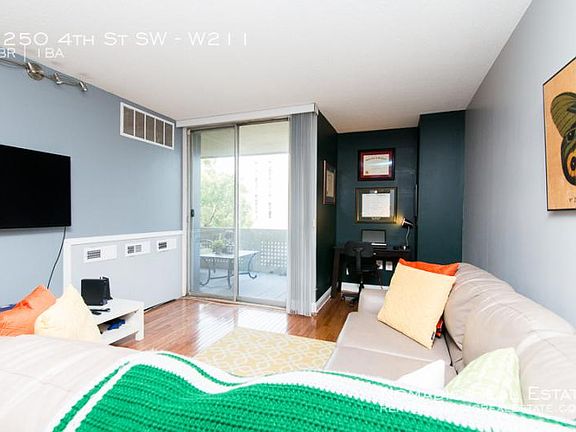 Water, gas and electric included! Tenant pays for their own cable and internet. Street parking (garage parking may be rented through the building, subject to availability). Shared laundry in the building. Sorry, no pets. Large stylish one bedroom condo with hardwood floors, excellent closet space throughout as well as an intuitive open layout. Let your creative senses run in the spacious living room (with office nook) with access to private patio and excellent views of the community. Modern efficient Kitchen features stainless steel appliances, hardwood floors, granite countertops, and breakfast bar. Master bedroom is sun splashed, can fit a king size bed with additional furniture and features a large closet. Attractive bathroom features newer fixtures and finishes. Located on a park like setting in the heart of the nation's capitol, Carrollsburg Condo Community offers convenient access to transportation, shopping, restaurants, the Arena Stage, Nat's Stadium, and Southwest Waterfront. Designed by the award winning firm of Keyes, Lethbridge and Condon and cited as complexes that reflect exceptional quality in their construction. Blocks from great dining and entertainment with a front seat view of Monument fireworks show! Waterfront Metro Station (green line) just across the street with many bus lines on M ST along with Safeway, CVS, Z burger, Station 4, Masala Art, and a Capitol Bikeshare, you are in the heart of everything that you need. Community pool, 24 hour front desk, daily trash pick-up and landscaping in serene Reply to the ad to book a tour! Easy online application takes only 10 minutes to fill out.