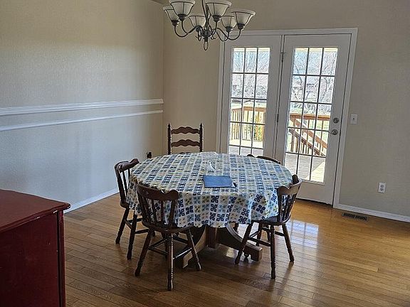Welcome home to this wonderful walkout basement home in Nixa MO. Fearures include a split bedroom floor plan on the main level plus a formal living room, formal dining room and kitchen with tons of storage and a breakfast nook/dining area also. The ceilings are vaulted, trays etc. Just look! The deck just off the formal dining room is covered and has an awesome view. As you venture downstairs you will find another great living area plus another dining room next to the wet bar as well as another spacious bedroom. The home feature laundry rooms on both the main level and a huge one in the basement. The basement ceilings are 9+ feet tall to offer a very spacious feel too. Also located in the basement is the all important John Deere room for your toys and tools. Many updates include a new roof and updated HVAC. Most of the home features wood flooring! All of this just minutes from the Nixa High School.