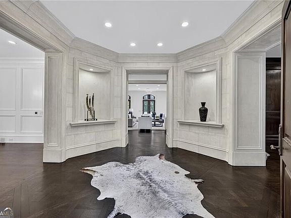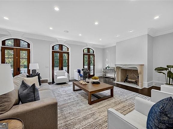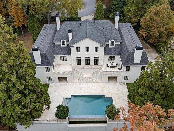 Located on a quiet cul-de-sac in one of Buckhead's most coveted neighborhoods, this stunning custom home combines timeless architecture with modern luxury. Behind stately gates, the residence features elegant symmetry, a slate roof, and beautifully landscaped grounds. Inside, light-filled living spaces showcase exceptional craftsmanship, from arched French doors to rich millwork and designer finishes. The chef's kitchen impresses with marble counters, professional-grade appliances, and a striking copper hood, huge granite island opening to inviting living and dining areas. The fireside primary suite on the main level offers vaulted ceilings and a spa-like marble bath with dual vanities and a soaking tub. Multiple terraces overlook the private, wooded backyard with a heated pool, creating a perfect setting for entertaining and relaxation. Newly refinished dark walnut hardwoods flooring and fresh paint throughout. Finished daylight terrace w/ bed/ bath, large flex space, storage, bar area. This exceptional home blends privacy, sophistication, and proximity to Buckhead's best shopping, dining, and top-rated schools.
