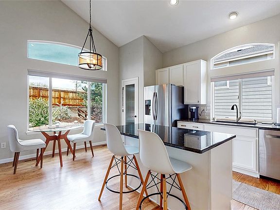 The pride of ownership! This delightful 3 bedroom, 3 bath, 3 car garage, 2500 SF, 2 story home is what you have been looking for! Remove your shoes and take a stroll across the brand new hardwood floors. Featuring a lovely front living room, vaulted ceilings, a large dining room leading to the expansive and inviting updated kitchen with stainless steel appliances including a newer gourmet gas stove, convection oven, granite countertops, frosted glass pantry, newly painted oversized cabinets, kitchen island and eating space. Ready to sit back and relax? Mosey down a few steps to the cozy and comfortable family room with gas fireplace, new light block shades, ceiling fans throughout. Need some Colorado air? Meander out to the large backyard deck surrounded by a variety of trees and flowers. Professionally installed concrete edging. Enjoy some quite time or entertain to your hearts delight. Upstairs offers a clean and well-kept 5 piece primary bed and bathroom with an oval tub, walk-in closets with double hangers, and bay window perfect for reading or gazing out at excellent views of the front range! Need more space, venture to the partial basement with crawlspace for plenty of storage or finish it out with your own stamp of approval. New carpet, new hardwood flooring, new paint throughout, upgraded larger baseboard trim, fantastic garage getaway with new painted walls, shelving, epoxy floors and mounted TV included! New hot water heater, furnace is 4 years old. This is one of the cleanest and well cared for homes within the small and hidden community of Tapestry Hills in Castle Pines. Miles of biking/ hiking trails, close to schools, parks, shopping and transportation. Backs to greenbelt for excellent walks anytime - day or night. Welcome to our neighborhood on the hill with a variety of natural amenities and the great stars above. If you love nature and nice neighbors too, this is Good Neighbor Living at it's finest!