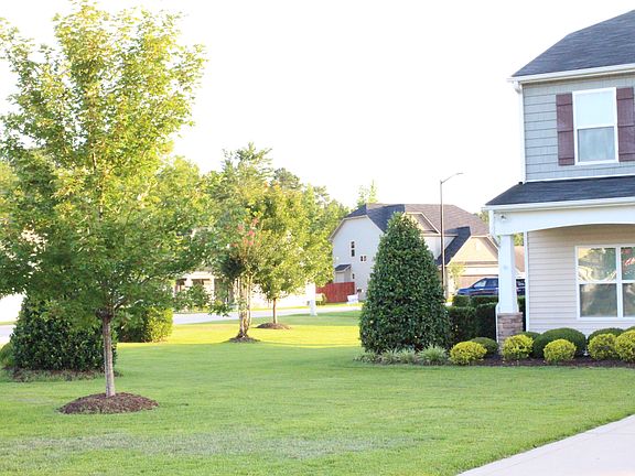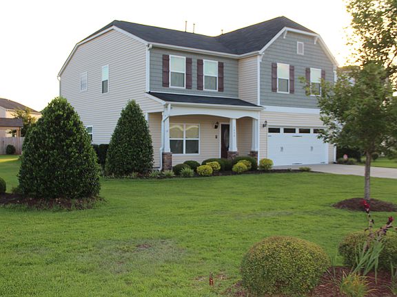 This former DR Horton (Connick style) model home sits on a large corner lot in a small and friendly neighborhood. This neighborhood is minutes to botanical gardens and historic downtown Fayetteville; and provides extremely easy access to Fort Bragg via I-295. This spacious home has a manicured yard and very matured shrubs with yard sprinkler system installed, doorbell/intercom system through the house, digital touchpad entry locks on all exterior doors (that can also be controlled through the alarm system's website or cell phone application), plantation blinds throughout the home, and so much more. This home has hardwood flooring in foyer and dining room. The kitchen has an extended counter space that overlooks a breakfast nook and spacious family room with a gas fireplace; this open floor plan is perfect for family interaction and entertaining. Recessed lights and pantry add to the overall appeal. The second floor offers a huge master suite with his / her closets and a deluxe bath with oversized tub and a separate shower. Upstairs also includes four additional bedrooms; three regular and another that can be a double sized bedroom or a large game room. The breakfast nook leads out onto a large covered patio for expanded entertaining. The finished garage leads into a large mudroom/laundry room which includes plenty of shelving, cubbies, and a closet. The home uses of a central air system to push a/c and heat; the heating leverages the efficiency of natural gas. Elementary school (Armstrong Elementary), middle school (Mac Williams Middle), and high school (Cape Fear Senior High) and school buses pick up students at the intersection this house is on for ease of access.