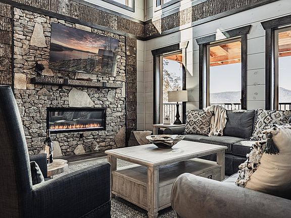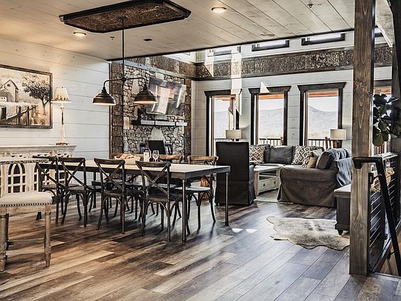 All Seasons is a new modern farmhouse-style luxury cabin with stunning views nestled in the foothills just outside the Great Smoky Mountains National Park. Its prime location is less than 10 miles from Dollywood and Pigeon Forge Parkway, with many exciting attractions to explore. If you're looking for a place to have fun, relax, or create an abundance of great memories this home could be for you. If you're looking for indoor entertainment, you'll find the cabin has lots to offer. Downstairs is a spacious and comfortable theater room furnished with reclining seats. The private indoor heated pool is a favorite of guests with its rare treat of mountain views from both the indoor pool and the relaxing hot tub on the balcony. Upstairs, there's even more to explore with a game room that includes a pool table, jukebox, and a variety of board games, providing hours of fun for groups large and small. Everything throughout the home has been handpicked with love for each space. No two rooms are alike, each with their own unique style. This home has 3 King bedrooms, each with stunning mountain views, 2 Queen bedrooms, and one bedroom with built-in twin bunk beds furnished with a futon and hours of entertainment on the multi-player arcade table. All King and Queen bedrooms have an ensuite, and all 6 bedrooms have a Smart TV and extra pillows and blankets provided to keep you warm and cozy. If you're looking for romance, relaxation, or to treat yourself, the electric, remote-controlled fireplaces on the main level can certainly provide you comfort and tranquility. There are 9 Smart TVs in the cabin with numerous apps like Netflix, Hulu, and Spotify (bring your own login). Enjoy a cup of coffee indoors or outside on the balcony snuggled in a rocking chair while watching the morning sunrise span across the gorgeous mountainous landscape. The open-concept kitchen is ready for you to enjoy cooking and entertaining; it comes well-stocked with many kitchen supplies so you can prepare your meals just as you would in the comfort of your home. Gather around the dining table with delicious food, conversation, board games, and laughs. Additional kitchen bar seating is provided. If you prefer to grill outdoors, you can breathe a breath of fresh mountain air while you grill and take in the views. Relax and enjoy good times and great memories at All Seasons!