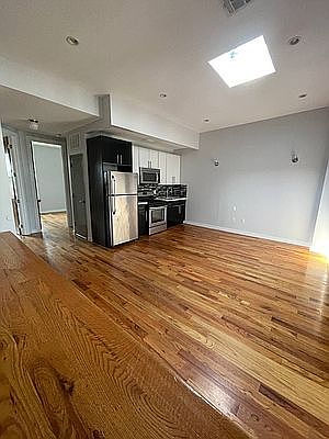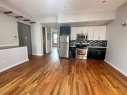 Impressive 4-bed apartment This massive 4-bed apartment, features a spacious living room and bedrooms, hardwood floors and high ceilings. The unit comes with huge windows that brings in natural light. The kitchen is sleek with glass tile back splash and stainless steel appliances. Plus a laundry in the building. Near J, Z and C trains, perfect location for commuters. Building is surrounded by bountiful coffee shops, restaurants and stores for everyday essentials.