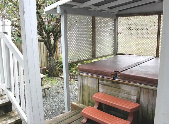 4 DOORS TO Oceanside's secluded beach & 2 blocks to restaurants. Greatroom w/ frplc & vaulted ceilings, light & airy w/slider to huge outdoor entertainment deck with oceanview & sounds. Hardwood floor in greatroom. Top floor has bdrm with tiny loft & full bth, ground floor has full bth + 3 sleeping rooms. Active vacation rental. Hot tub. Broker owner