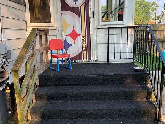 Cute 2 story home featuring new front concrete steps, refinished kitchen cabinets, newer furnace prepped for AC, covered flagstone patio, fenced yard, heated sunroom. New painting being completed on front of house, front porch slab & railings and garage.