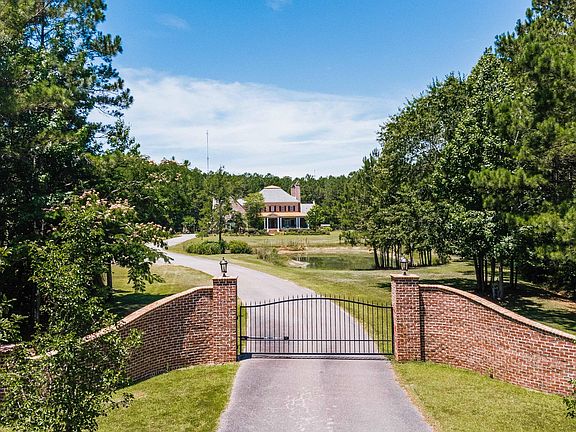 Come fall in love with this unique one-of-a-kind custom built brick home. Private, luxury and tranquility describe this 7.83-acre estate. As you drive through the gated entry this property opens to a heart shaped fully stocked pond, mature vegetation, carport large enough for an RV or car collection, wired workshop with attached two bay garage and separate storage building. This stunning Southern Living Floor Plan has plenty of living space. 7317 sq ft, 5 spacious bedrooms, 6 baths, separate formal dining room, study/office, large open family room just off kitchen, eat-in kitchen, 1st floor master suite & private guest quarters. Beautiful Australian Cypress Floors, Simonton Elite Windows and Plantation Shutters. Open plan living room, stone fireplace flanked by built- in birch cabinetry and in-cabinet display lighting, cathedral ceiling and chandelier with motorized lift for easy cleaning. A wall of windows takes you to the outdoor living space, fireplace and in-ground saltwater pool. Chef's kitchen boasts a six-burner gas stove with pot fill, 2 ovens, subzero refrigerator and separate subzero ice maker. The center of this gorgeous kitchen is an oversized island with Brazilian Cherry Countertop, soft close custom cabinetry under-cabinet and in-cabinet display lighting, granite countertops. Just off the kitchen walk-in pantry, half bath and entrance to oversized garage and stunning epoxy floor. Master bedroom is an owner's retreat, built-in birch cabinetry, trey ceiling under mount lighting, 1st floor laundry. Rinnai Gas/Tankless Hot Water Heater. Head upstairs to a 1500 sq ft Game/Media Room. Play pool, watch movies, entertain, wet bar, bar frig., half bath and 2nd floor living room. Completing the upstairs area is a 2nd floor master bedroom with on-suite bath walk-in closet, Juliet Balcony, 2 additional bedrooms, custom built-in cabinetry, wainscotting, shared jack/ jill bathroom, upstairs laundry room. Spare room for whatever meets your needs.