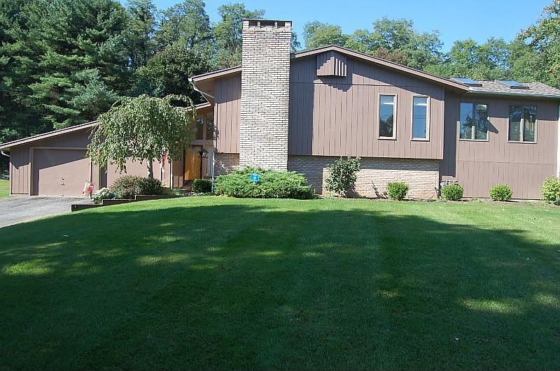 Priced below assessment, this Fabulous 2700 Sq Ft home is located on a private 1 acre wooded lot. The Bright & Sunny Kitchen features a breakfast bar & pantry, and is open to the Dining area with sliders to the 4 season room with skylights. Enjoy peaceful nights on the rear deck. Both the Living and Family rooms include wood burning fireplaces. 5 large bedrooms & 2 full updated baths, new carpeting & light fixtures, 2 car garage with workshop & storage shed.
