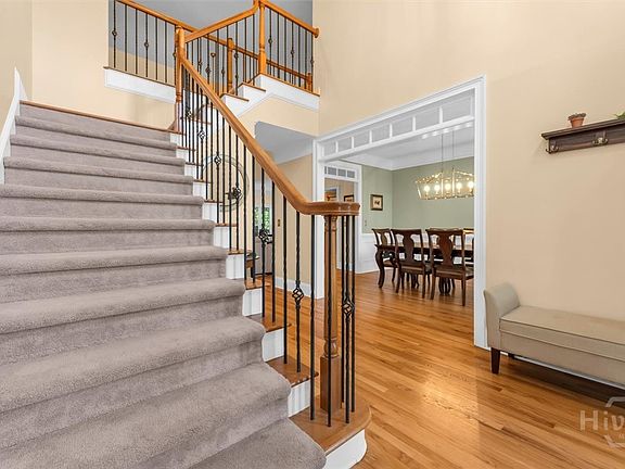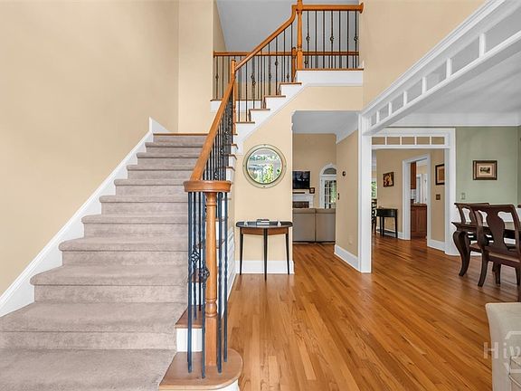 This is the home you've been searching for! This 4-sided brick home in Mulberry Plantation is move-in ready. The owner's suite is conveniently located on the main level with an updated bathroom and walk-in closet. Also on the main level is a flexible room ideal for a dedicated office or playroom. Upstairs, you'll find a private en-suite bedroom along with two additional bedrooms that share a full hall bath. All upstairs bedrooms offer generous closet space, including two walk-in closets. The heart of the home is the open-concept kitchen overlooking a vaulted great room, ideal for both entertaining and everyday living. Beautiful wood floors flow throughout the main level, including the owner's suite, enhancing warmth and character of space. Step outside to an incredible screened porch with views of the expansive, irrigated and fully fenced backyard. This porch can be accessed from the living room as well as through French doors from the owner's suite. Additional features include a detached brick third-bay garage, an EV charger in the attached two-car garage, crown molding throughout, and a brand-new roof installed in 2023. Located in a highly sought-after neighborhood with a pool and tennis courts and in close proximity to schools and shopping, this home has it all. Schedule your showing today!!