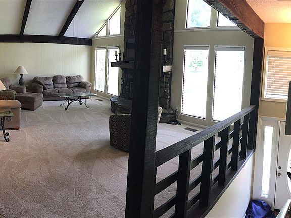 SPACIOUS LIVING in the 4 BEDROOM/ 3 BATH home in nice neighborhood setting. Brand new carpet in all the rooms! New vinyl flooring. Lovely vanity in bathrooms. 2 Bedrooms on one level and 2 Bdrms on the other level; Large Master bedroom, very high ceilings, walk-in closet. Spacious kitchen & prep area. Stone Fireplace. 4th bedroom is very large. Full bathroom w/ bedroom 3 & 4. See the party-sized deck: both covered and uncovered areas. Low maintenance siding. Basement garage . Fenced yard with building. Septic tank pumped Spring 2016. County Schools, not city. A true WINNER!
