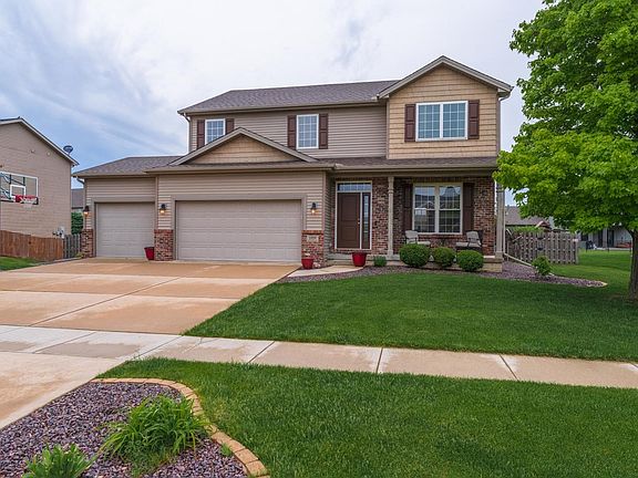 Beautiful, well-maintained 2-story home with 4 large bedrooms, 3.5 baths, 3-car garage & lots of custom features. Finished basement has 92" screen w/projector, wet bar, wine room, full bath, egress window, built-in shelving, newer carpet & lots of storage space. Kitchen has Quartz countertops, island, pantry closet, stainless appliances & taller patio door. Alexa-enabled lights on main level! Large master bedroom has cathedral ceilings, huge walk-in closet, separate garden tub & updated shower. Large fenced backyard is professionally landscaped with custom patio. Playground equipment stays. Don't miss out on this beauty! All information deemed to be accurate but not warranted.