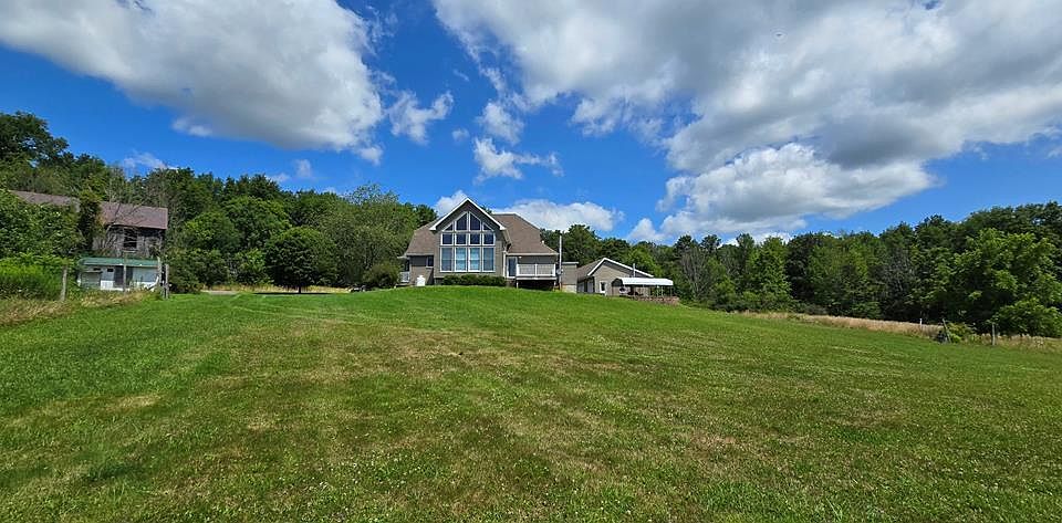 This would be great as a farm or a vacation home. Nestled on over 60 acres of picturesque countryside, this stunning 2-story house boasts a 3-4 acre pond, breathtaking views, and a sugar shack for maple syrup enthusiasts. Built in 1998, the home features a 1st floor master suite, 2 upper bedrooms, 2 full baths, and 2 half baths. Enjoy hardwood floors (radiant heat), cathedral ceilings, and the potential to finish the walkout basement. Detached 2 car garage with wood shop. Fenced in apple orchard. Perfect for horse lovers, hunters, & anglers seeking a serene retreat with endless possibilities.