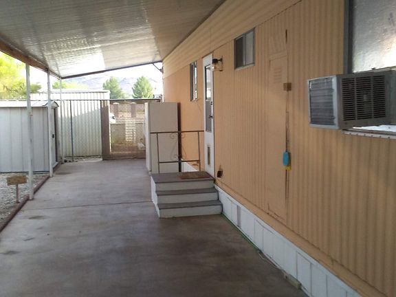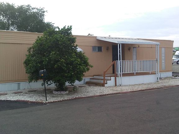 2 bedroom 2 full bath Double Wide in a 45 and older community. Fully fenced yard with chainlink fencing. Two driveways, one on each end of the home, 3 sheds (4X8, 5X8 and one that is 8X10), both driveways were recoated less then two weeks ago. 1 driveway covered by metal roofing. Outside measurements are 48’X24’, there is a full cover over the rear patio, covered parking on North end driveway and covered front porch. AC unit is 5 years old, was serviced this year and works like a charm. Furnace is also 5 years old and we have had no problems with that unit either. Roof is a foam roof with a fresh coating of the elastomeric coating applied two years ago. Kitchen is 13’6” by 9’, dishwasher stays and is only 2 years old. Double ovens, they are old but have been working fine. Electric stovetop. Dining Room is 11’ by 9’ with ceiling fan and light. Living Room is 21’ by 14’. Living room, dining room and hallway have new laminate flooring that is less than 4 months old. Vinyl Vertical blinds in stay with the home. New paint finished as well. Common Bathroom off of the hallway has bathtub and shower, this is full bath #1. Master Bedroom is 14’ by 11’6” with full bath attached. This bathroom has full size shower but no tub. This is full bath #2. Walk-in closet 5’7” by 6’. Bedroom #2 is 12’6” by 12’ and also has a walk-in closet that is 5’7” by 6’. Bedrooms and closets have carpeting, remaining rooms are either laminate or tile flooring. Washer Dryer and Refrigerator included The park has a nice swimming pool that is always clean and functional. We are located walking distance from the biggest Frys that we have ever seen so convienence is not an issue. The park is on a dead end road so although we are directly off of Bell Rd, we do not get the cut through or short cut traffic. Park requirements state 40 year old or older to live in the park. Lot rent is $425 which incldes sewer, water and garbage pick up. Asking price is $28,50o. Available within 1 week of closing. Call or text Mike at 928 two four 2 772 nine.