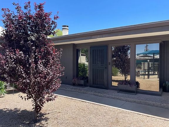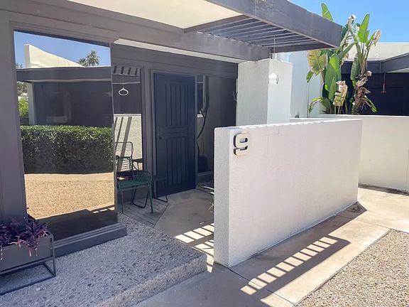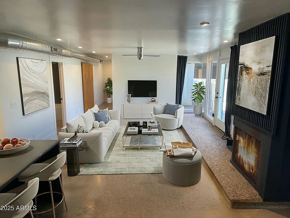Nestled in the heart of Uptown Phoenix, this exquisite mid-century modern home harmoniously blends timeless design with contemporary luxury. This stunning 3-bedroom, 2-bathroom residence, gracefully situated poolside, encompasses 1,332 sqft of thoughtfully curated space. Step inside to discover an open-concept layout bathed in natural light, courtesy of floor-to-ceiling windows that illuminate the main living area. The polished exposed aggregate concrete floors add a sleek, modern touch while complementing the home's Frank Lloyd Wright-inspired "Organic Architecture," characterized by clean horizontal lines, open plan structure and the seamless integration of natural materials like wood and stone. A welcoming wood-burning fireplace serves as a centerpiece, infusing warmth and character into the space. The gourmet kitchen is a chef's paradise, featuring a professional-grade Sub Zero refrigerator, a Professional series Viking range, a wine cooler bar, and elegant finishes throughout. The primary suite offers a private retreat, boasting a spa-like double walk-in shower and French doors that lead to your own secluded patio. The third bedroom, complete with its own entrance, presents versatile options as a home office, guest suite, or creative space. Outside, the private backyard transforms into a tranquil sanctuary, adorned with Brazilian hardwood floating benches, a lush succulent garden, and a stylish patio ideal for relaxation or entertaining guests. With two covered parking spaces, ample storage, and a pet-friendly community, this home seamlessly combines practicality with beauty. Its prime location ensures easy highway access, a top-tier school district, and proximity to some of Phoenix's finest shopping, dining, and outdoor experiences, including the vibrant Uptown Farmers Market, Biltmore, and Melrose District. Completely remodeled with luxurious finishes throughout, this remarkable home is a rare find schedule your tour today! 12+ months