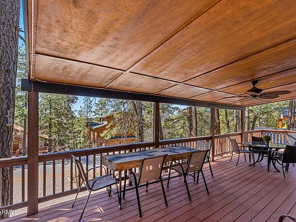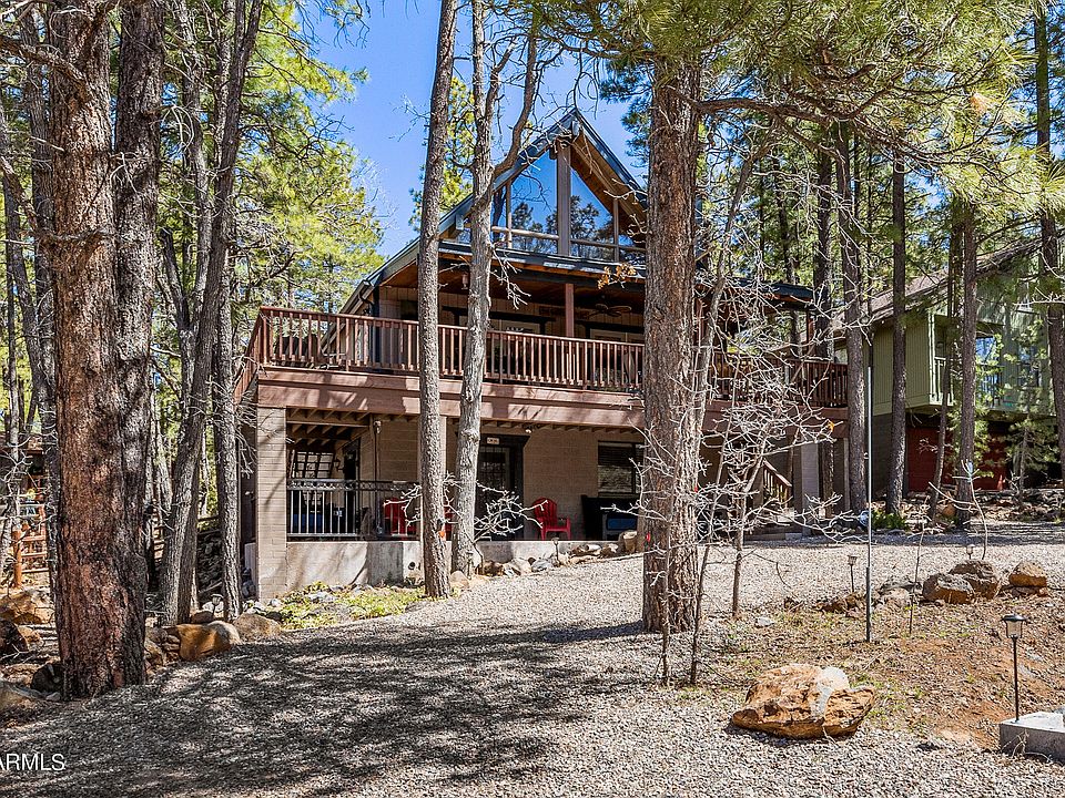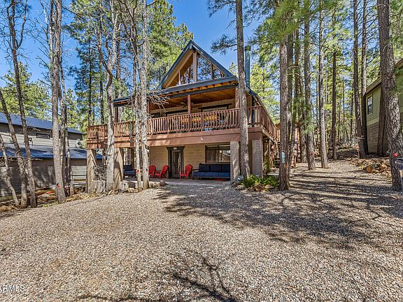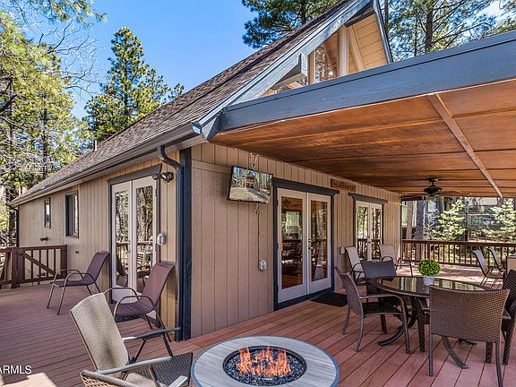 Gorgeous Chalet! Situated on a serene cul-de-sac, this residence is situated in one of Munds Park's most desirable neighborhoods. Offered fully furnished, it's move-in ready—just pack your clothes! With expansive windows providing treetop vistas, you can enjoy the scenery from every angle. A wrap-around deck offers a peaceful retreat among the trees. Inside, this charming home exudes character, boasting tongue and groove ceilings and pine walls on the main level. The focal point is a wood-burning fireplace in the living room. The kitchen features knotty pine cabinets, granite countertops, and stainless-steel appliances. Upstairs, discover a spacious primary bedroom and loft, perfect for a home office. A bonus is the lower-level guest wing with a separate entrance and patio. Inside, a kitchenette and full bathroom provide convenience, along with a sleeper sofa for additional accommodation. (Kitchenette consists of sink, refrigerator, and microwave).Experience all the wonders beautiful Munds Park holds. Embrace the refreshing summer ambiance, indulge in activities like golfing, hiking, and fishing. With Flagstaff just a quick 20-minute drive away and the stunning Sedona within a 40-minute reach, adventure awaits at your doorstep.