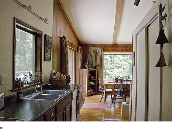 A lovely private and pet-friendly home atop Jericho Mountain where each season brings new and beautiful surroundings. This property features a raised deck overlooking tiered gardens and a large fenced shady lawn perfect for a dog. This 3 bedroom home also offers a large living room and dining room with a ribbon of large picture windows offering views into the woods. Bright and airy bedrooms with spacious multiple closets, hardwood floors, cathedral ceilings, and a Bucks County stone fireplace are among the numerous amenities this property offers.