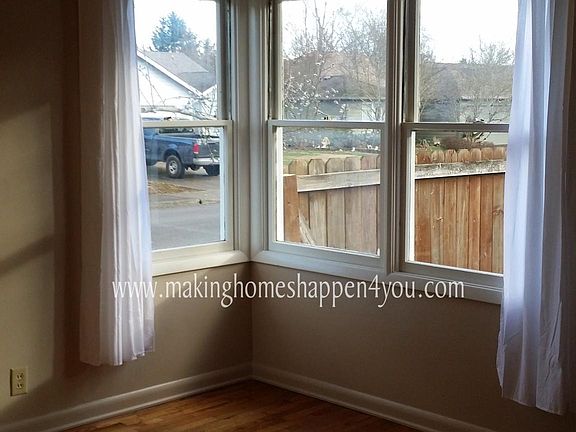 Making Homes Happen Inc Kathleen Ashley, Agent Warm and inviting home with old time charm. Hard wood floors through out the living, dining and bedrooms, large laundry room with washer dryer hook up. Double car garage with opener. Beautiful vinyl windows for lots of light. Even has a cut out where the phone booth use to be. Non-working fireplace. Fenced back yard, with raised bed for gardening. Curtains and appliances are subject to change. Please call to set up a viewing, do not disturb tenants please. Screening fee $40 per adult. Month to month lease. Utilities and yard maintenance tenants responsibility. Approved Pet with extra deposit. Non working fireplace.
