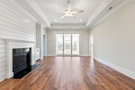 - Master Downstairs, Walk-in Closet(s), Tray Ceiling(s), High Ceilings, Entrance Foyer, Solid Surface, Bookcases, Kitchen Island, Ceiling Fan(s), Pantry, Walk-in Shower, Gas Log, Walk-In Closet(s)