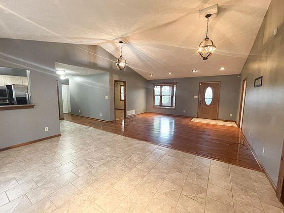 'Welcome Home' to this 6.8 acre Homestead/Mini Farm with cement floored barn with stalls and fenced pastures. Less than 3 Miles to Main Street in downtown Richmond! Brick home has open floor plan with cathedral ceiling, bay window, split design bedrooms, 3 bedrooms and 2 full baths. Views and the most beautiful sunsets right from your front porch. There are so many possibilities with this acreage and location the current owner raised cattle here by rotating pastures, there are water hydrants in the yard and in the pastures but it would be a great location for a buyer to open horse boarding or riding stable which would appeal to many being so close to the middle of Richmond or could be a small home development. This is must see if you are looking for elbow room and privacy.