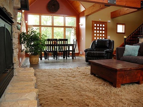 This home is situated on 9 acres which offer a private lifestyle. The natural elements inside compliment the scenery outside. Much of the wood including the 100 year old beams, knotty alder cabinets & pine plank flooring is reclaimed. The flowing fl