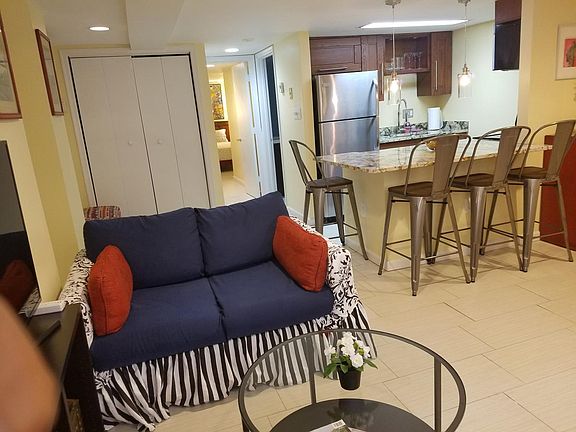 Fully furnished beautiful unit in Columbia Heights. Short or long term lease. Tenant pays utilities (electric, water & internet) No SMOKING & NO PETS AREA: 3 blocks to Columbia Heights Metro - Green line; 3 blocks to Target Giant grocery store walk to the Coupe restaurant 14th and U Street corridor and lots more...; close to Giant grocery store Yes Organic grocery store Whole Foods grocery store & Trader Joes grocery store -- fantastic location. UNIT: Nice bright and spacious garden apartment 1 bedroom/ 1 bathroom with washer/ dryer. High end finishes. Granite Brazilian kitchen counter tops stainless steel appliances lovely porcelain floors.... Stunning marble bath with wonderful fixtures and mirrors. Big bedroom and bath. Verizon FIOS High speed Internet! Outside shared DECK! Fabulous Location.... Furnished; short or long term lease, Tenant pays utilities (electric, water & internet)
