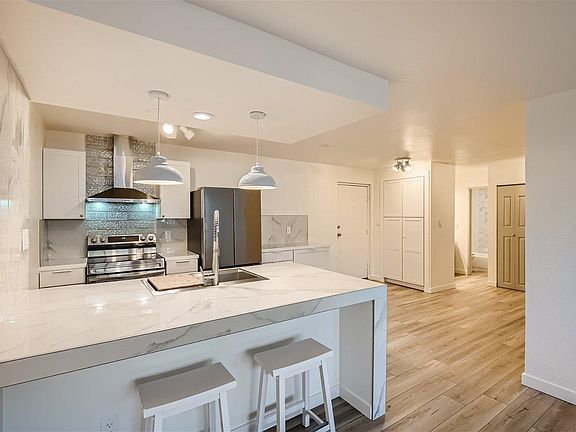 FREE JULY RENT! Apply, qualify and get the rest of the month of July for free! Freshly renovated garden level unit with foothill views. Open concept and upgraded storage throughout, complete with brand new Samsung stainless steel appliances and cabinetry. New floors, baseboard heaters and paint with an abundance of natural light in all seasons. Situated at the main area of the complex, the unit is easily accessible but remains quiet and relaxing. Close proximity to easy access side entrance of building and staircase to 3rd floor indoor laundry facility. Step outside the side access door and you are right at the property's exclusive amenities which include: beautiful spacious pond, community garden, recently upgraded gym facility, the clubhouse, pool and sand volleyball court. The clubhouse is large and spacious as well with comfortable seating in a large TV area, pool hall, kitchen, grand fire place, indoor/outdoor pool and more! Nearby, within short walking and biking distance are the beautiful Golden foothills and recreational amenities like APEX, lookout mountain, Fossil Trace golf course, clear creek and Golden gate canyon. Also within a short 10 minute drive is historic downtown Golden, rich in the history of clear creek and full of outdoor activities, shops, restaurants, breweries, CO School of Mines events and Coors brewery. Proximity to i70 for access to the Rocky Mtn foothills for skiing, hiking, biking and outdoor activities as well as Evergreen, Blackhawk/Central City, Red Rocks Amphitheatre, and Green Mtn. This condo sits off 6th Ave which gives access to downtown Denver within 15 minutes. Designated parking spot assigned for tenant use with plenty of additional guest parking available on property. Tenant is responsible for electric and internet. No smoking allowed inside the unit. No cats allowed. Dogs allowed with non-refundable pet fee at time of occupancy and $50/month. Credit and background check required.