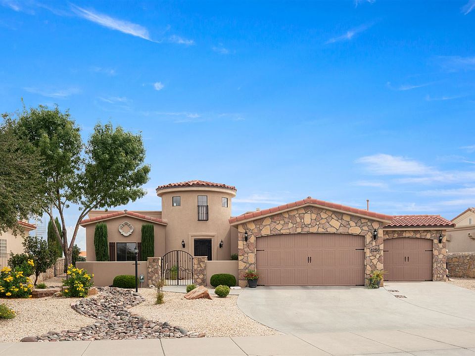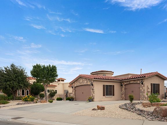 A must see exquisite Tuscan style, custom built home in the coveted Sonoma Ranch community! This magnificent home features captivating panoramic Organ Mountain views, a 14ft. turret tower entry and an interior patio with a fireplace. The great room with vaulted ceilings and large windows has an abundance of natural light and an inviting, open floor plan. The beautifully appointed kitchen boasts custom cabinetry, imported Italian tile, a warming drawer and granite counter tops. The over-sized bedrooms are complete with ensuite bathrooms and large walk-in closets. The backyard patio is ideal for entertaining with an outdoor kitchen and ample space for furniture. A bonus for this meticulously maintained home is an interior storage room and an oversized garage. The location couldn't be better with close proximity to the golf course, hospitals, shopping and schools. Don't let this exceptional property get away, schedule your showing today!!