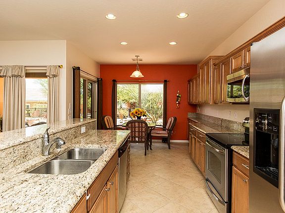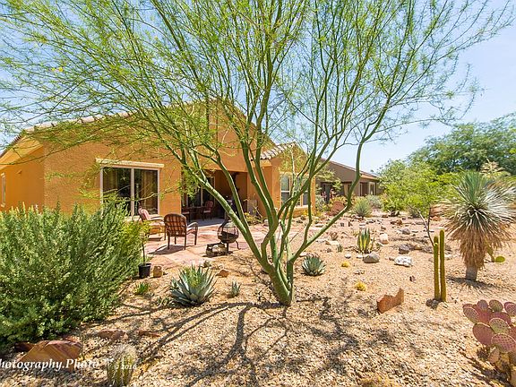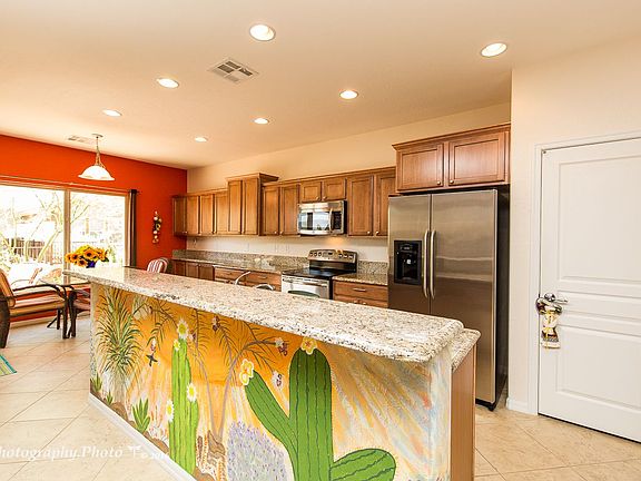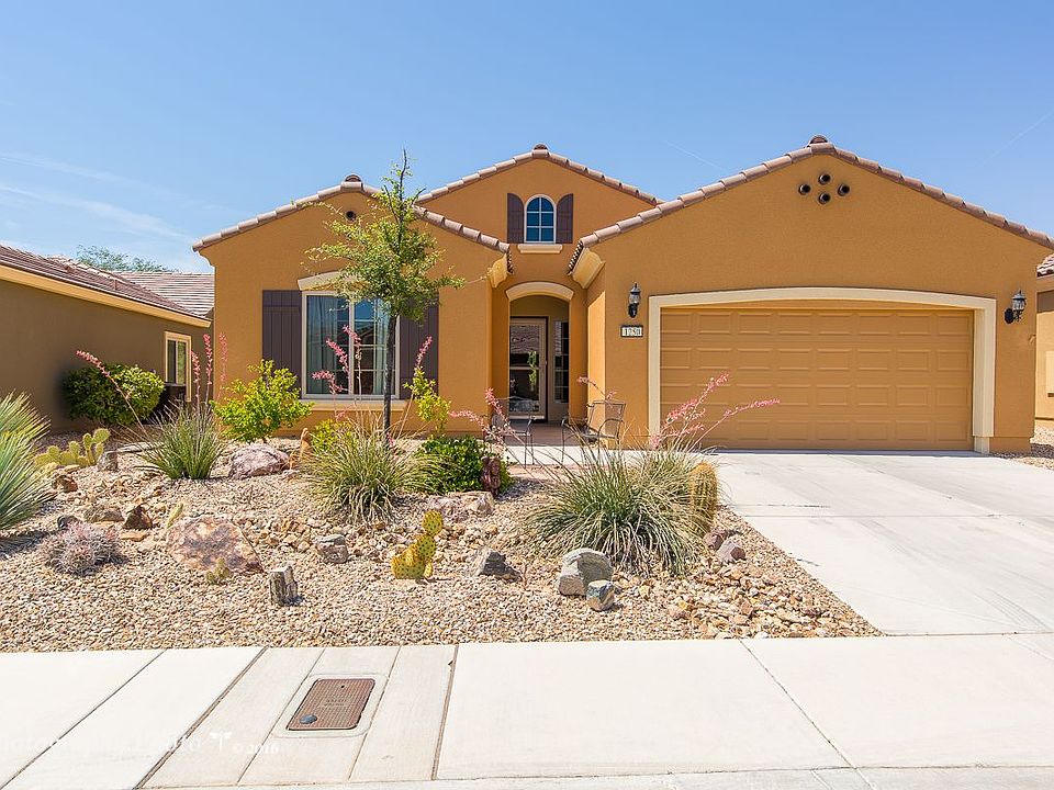 SIDs PAID! Beautiful well maintained Jasmine model in Sun City with 3 BRs plus Den. Diagnol tile throughout except carpet in bedrooms. Custom paint, maple toffee cabinets, granite counters, SS appliances, Bosch Washer/Dryer, water softener, comfort height toilets and storm door with glass & screen to allow light and breeze in home. Great Room is pre-wired for surround sound and has pine wood built in media cabinet. Kitchen bar facing great room has original custom desert mural a must see to appreciate. Garage has electrical outlet for charging golf cart. Backyard has beautiful desert landscaping and large enough for pool. Covered patio is extended with flagstone pavers and pre-wired for speakers. Front yard has flagstone pavers sitting area. Enjoy Sun City's luxurious resort lifestyle and amenities including a 30,000 square foot club house, indoor/outdoor pool/spa, bocce, tennis, pickle ball, billiards, ping pong, state of the art fitness, crafts room, clubs and activities for every interest. Ask listing agent how to own this home with 50% down and have NO mortgafe PAYMENTS for life!