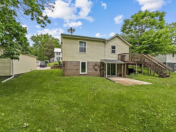 What a bright and cheery home! Maintenance free siding and newer decks on the front and back of the home. The two car garage features a newer metal roof. The yard is ready for your swing set or firepit and is spacious too on this quiet street! Inside you'll find an updated home with two bedrooms on the main level and one in the finished lower level. Updated bathrooms as well and main floor laundry. The kitchen features white cabinetry and newer appliances! Great location in town and move in ready!