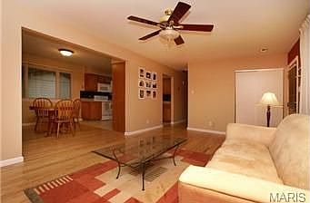 Prepare to be impressed by this lovely home on a large level lot with mature trees. Home boasts vinyl siding, enclosed aluminum soffit & fascia and spacious corner lot with white vinyl fenced backyard. Living Room has beautiful refinished hardwood flooring flowing into hall, ceiling fan and great natural light with large window and is open to the breakfast room with large window. Updated kitchen features granite countertops new in 2011, great cabinet & drawer space, built in microwave, smooth top electric stove and kitchen window overloooking back yard. Master Bedroom offers a full bath with glass shower doors upgraded in 2011. Anderson replacement windows on main level installed approximately 2004. Features include: White doors and trim; 2 inch white faux wood blinds in Breakfast Room, kitchen and master bedroom; 1 car garage with opener and access door to backyard; wood floors under carpeting in bedrooms; all electric home, good highway access, located in the City of Arnold.
