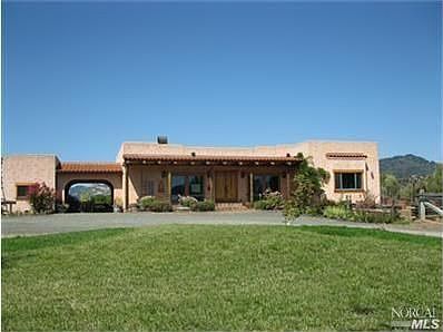 DISTINCTIVE ARCHITECTURE! Stunning 2700 sq.ft. southwestern-style home on 29 level acres with seasonal creek. Great room with fireplace. Gourmet kitchen with island, walk-in pantry, high-end appliances and tile counters. Spacious den. Mexican paver tile floors and radiant heat throughout. Landscaped yard, large patio and security gate. Fenced and cross fenced. 5 stall barn with tack room, office, guest room and bath. Two barns, storage shed and 2 bedroom, 1.5 bath mobile. $1,300,000