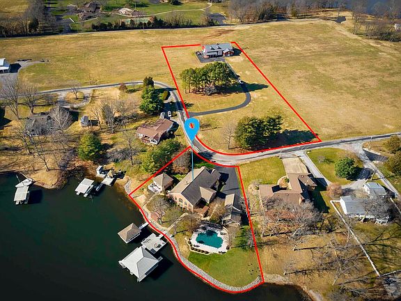 No-wake waterfront estate on Lake of Egypt that has every amenity you can dream of. This home is over 5000 square feet of luxury. The main level of the home hosts formal dining, an exquisite custom designed chef's kitchen with granite countertops, an expansive stone fireplace, and walls of windows overlooking the lake. The master suite has a conversation area, fireplace, and his/her closets. Second en suite on main level, also. Lower level has a second full kitchen, recreation area, living and dining areas, a bunk room that sleeps 9, a craft room/4th bedroom, as well as an infra-red sauna for 2 and custom closets. There is a cedar pavilion extending from the garage, complete with wood-burning stone fireplace, sitting/dining area, overlooking the heated 18x36 salt-water pool with lounge shelf. A cedar pergola covers the outdoor kitchen and bar. The boat dock has 2 slips and 2 lifts, a pwc docking station, a 27x24 sunning deck, as well as a swimming deck with slide. Want out of the sun? Hang out inside the screened-in cabana, complete with bar, overlooking the sand beach, boat dock, and brick firepit. Having guests? The guest home has its own kitchen, composite deck, and fireplace. Available, SEPARATE LISTING, is a 40x72x14 pole barn at the end of an asphalt drive directly across from home. It is fully insulated and has 14' walls and doors. There is a loft, a custom storage room, and an office with a 3/4 bath.