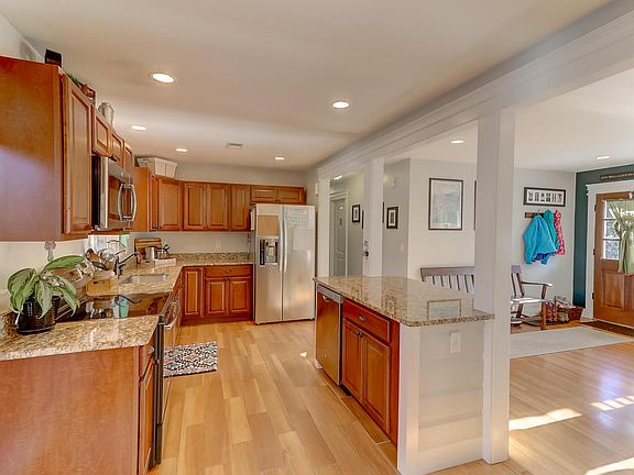 Beautiful renovated ranch with a large private back yard all conveniently located... win win! Open floor plan kitchen with island granite counters and stainless appliances. Open dining area looks out to the large deck and fenced private yard great for everyday living and entertaining. Both updated baths include shower tubs with tile. Laundry room with washer and dryer that convey. 2014/2015 renovation included new: roof energy star windows water heater duct work and drain field. Attached garage has floored attic for storage.~$1 600 credit available toward buyer's closing costs and pre-paids with acceptable offer and use of preferred lender. ~