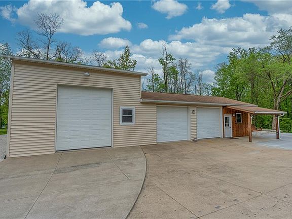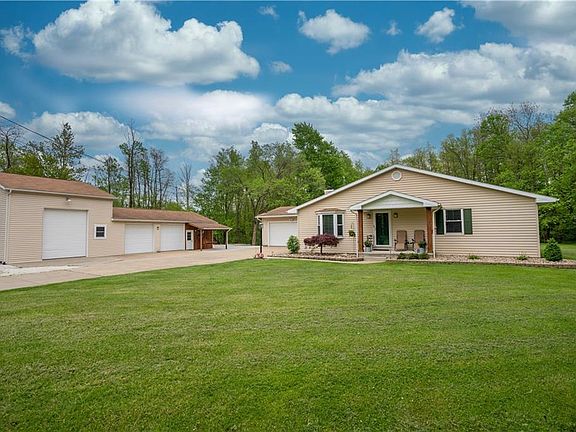If you are looking for a move in ready ranch home, with a little bit of country and a very private setting, this is it! This lovely updated home sits on 3 acres surrounded by woods. The family room has a vaulted ceiling, and opens to the spacious dining area with a fireplace. The gorgeous kitchen was fully remodeled in 2018 with soft close cabinetry, granite counter tops and stainless steel appliances, and has a french door leading to the newer trex deck (2017). Most of the first floor has wood look vinyl plank flooring (2018). The first floor laundry includes a washer and dryer. New carpet is in the master bedroom, which has two closets, one a walk-in, and room enough for king sized furniture. The master bath has a jetted tub and a step in shower. The 2nd full bathroom is also on the first floor and has been nicely updated. Two additional bedrooms each have good sized closets. The lower level has two finished rec rooms and still tons of storage. Besides the 2 car attached garage, there is also a detached garage perfect for car enthusiasts, small business- endless possibilities. There are 2-10 doors and a 14 door and over 1700 sq ft. Garages are heated and insulated, with water and electric. Concrete drive and patio 2019, roof, furnace a/c and windows 2007, water softener 2020. Come visit, fall in love, and make an offer!
