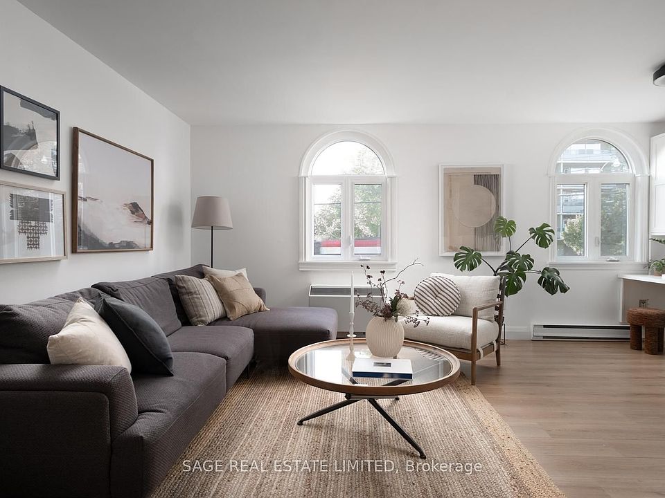 Sun, Style & Square Footage - Served Daily. At the crossroads of Queen West, King West, and Liberty Village, discover a hidden gem in an intimate townhome community: 2 storeys of bright, open living that feels like a retreat in the heart of the action. A sun-soaked living room from dawn 'til dusk, framed by arch-top windows and overlooking a dreamy 355 sq ft private patio. The freshly renovated kitchen brings the magic: quartz counters, sleek new cabinets, endless storage, and built-in dining. It all flows effortlessly into the airy open-plan living space, complete with a built-in home office that makes WFH feel a little less "work". Downstairs is the flex zone - two spacious bedrooms, a den you'll actually use, plus a second WFH setup if you're double-booked. The bold, stylish bathroom serves spa vibes with a roomy tub and smart storage. Step straight out to your oversized private patio - a rare Parkdale bonus that begs for BBQs, brunches, and plant babies galore. Top it off with exclusive underground parking, visitor parking in a gated lot, and a maintenance package that goes above and beyond: Bell Fibe high-speed internet & cable, exterior upkeep, parking, snow removal, landscaping, water, and garbage collection - all included. And the cherry on top? You're steps to indie cafés, buzzing restaurants, local boutiques, and green parks, with the King streetcar ready to zip you downtown. This is downtown living, leveled up.