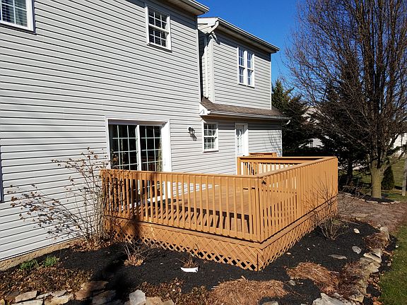 Outstanding, well maintained home on a large flat lot. This beautiful home is upgraded top to bottom and includes an impressive custom kitchen with Corian countertops, large island with breakfast counter, tile floors and backsplash. There are sliding glass doors that lead to the deck. The dining room and living room feature laminate wood floors, recessed lighting and plenty of windows allowing plenty of natural light. Check out the large lower level family room with laminate wood flooring, recessed lighting and den/office area. There is also a storage area with shelving. The large master suite features a full bath with jetted tub, double sink, shower stall, ceramic tile floors and laundry chute. There is also an oversized walk-in closet and window seat with built-in cedar lined chest. Three additional large bedrooms and hall bath complete the second floor of this home. All bedrooms included laminate wood flooring and plenty of closet storage. The first floor has a large laundry/mud room between the kitchen and garage. This area features a wash tub and plenty of closet and storage space. The attached garage is oversized with added storage closets and shelving. There is a additional 24x24 detached garage behind the home with electric. This building would make an ideal workshop or use for additional car storage and includes a 2nd floor storage area. Nice location, home is adjacent to the local community park. This home includes a one year HMS Buyer Warranty. Make you appointment today to see this exceptional home. You will not be disappointed.