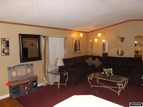 3 BR, 2 BA, 1056 sq. ft. mobile home. Open floor plan, huge master with ensuite. Built in 2003. Lot rent average is $475/mo. Includes garbage, water, sewer, so amount can vary some. Approval from management company to let mobile home stay on rented lot.