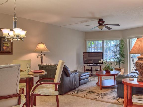 This 2 bedroom, 2 bath condo in this popular 55+ community, is conveniently located on the ground floor next to the club house and swimming pool, and features new appliances, granite counter tops and ceramic flooring. Queen size bed in the Master with a walk in closet plus a full wall length closet. The guest bedroom has 2 single beds that can be combined to make a King. Updated bathrooms include a guest bath with a tub/shower combination. The complex is surrounded by the Intracoastal Waterway with boat access to the Bay. Boat slips can be rented for a nominal fee. Enjoy your morning coffee on the large Lanai overlooking the boats in the Harbor. There is 1 assigned carport and ample visitor parking. Siesta Harbor has a large saltwater heated pool, spa, fitness center, outside grills and tables, shuffle board courts, boat docks, fishing pier, a large community room with kitchen facilities for parties and a small lending library and pool table to occupy your time on that rare non-sunshine day. Across the street is Crescent Beach (Siesta Beach) rated #1 beach in America with deeded beach access for Siesta Harbor guests. Put your toes in the fine quartz sand that stays cool on your feet as you walk along the Gulf of Mexico shoreline. Siesta Key Trolley offers free rides to Turtle Beach or Siesta Village. Siesta Harbor is an over 55 community. No pets allowed. High season rates in effect December through April.