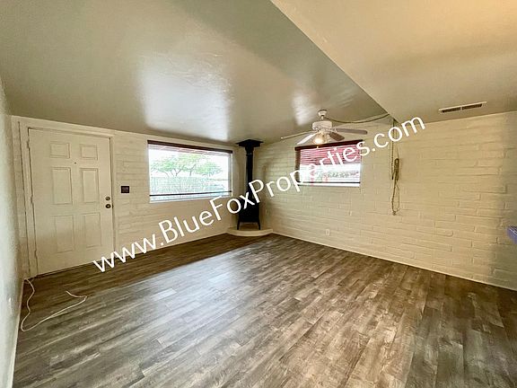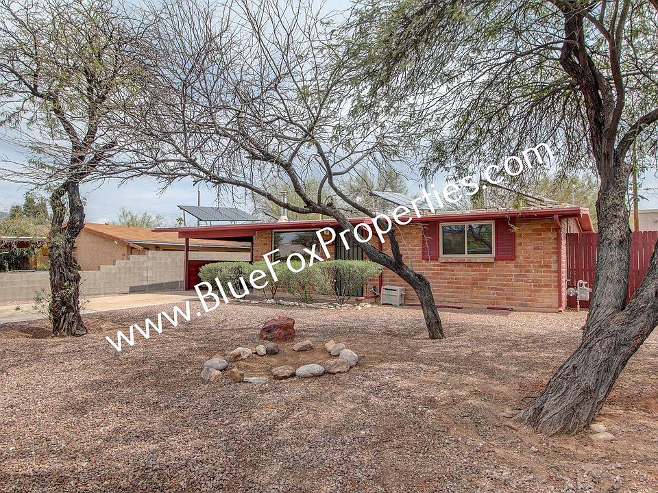 Charming, central bungalow featuring designer paint, laminate floors, doggie door in the sliding glass door, plus awesome energy features including: *solar electric; low flow toilets; dual pane energy efficient windows throughout this home; A Nest learning wifi thermostat smart thermostat, and Nest wifi carbon monoxide detector. Included is a pot bellied stove in LR. Great backyard with 2 storage sheds, raised garden beds on the side yard, and a chicken coop! One shed has window AC and is set up as a detached home office/den. Great location near UofA, shopping, and restaurants. *Tenant agrees to have PV monitoring connected to their Internet service, and allow access for service (configuring the monitoring).