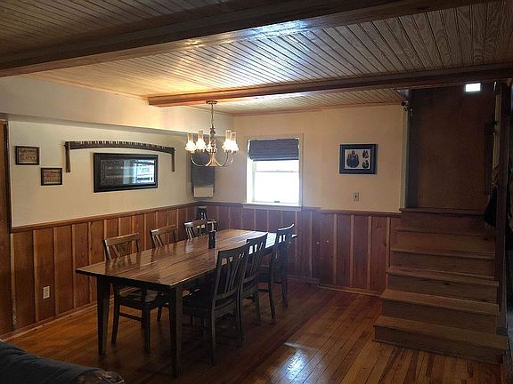 Unique home on 5.44 acres with gorgeous hardwoods throughout the acreage. This property has a small pond in the front and has a creek that edges the property giving you the feeling of living in the mountains. The house has an open main level with a bedroom, 2 closets and a full bath. The kitchen has custom built cherry cabinets and tile on the floor and backsplash. The family area has a beautiful stone fireplace, a winding stairs case to 2nd level with 3 bedrooms and 2 full baths. There is also a large family room with lots of nice wood floor. With an entrance to the 19x19 screened porch from the main living area and the upstairs family room, this porch is perfect to sit and relax at the end of the day!! This home has tons of beautiful wood work! There is a red barn great for storage next to the house and additional storage building behind the barn.