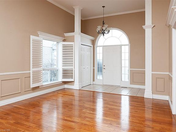 Beautifully cared for family home in the sought after Stoney Creek Neighbourhood, within walking distance to schools & transit. This multi-level split home located on a corner lot offers sun-filled, spacious living that is sure to impress. Open concept main floor w/ living room, dining room & kitchen features 12' ceilings, hardwood & ceramic flooring, crown moulding, California shutters, granite countertops, stainless steel appliances, garden doors & over sized transom windows. Second level includes master bedroom, cheater ensuite w/ soaker tub & separate shower, plus two additional bedrooms. The open lower level offers a spacious family room with gas fireplace, 4th bedroom & 3pc bathroom. The basement level, with laundry, offers plenty of storage & tons of potential for future development. Garden doors from the dining room open onto a beautifully landscaped, fully fenced yard with stamped concrete patio & large garden shed. Two car garage with convenient inside entry, insulated garage doors & automatic openers. Roof shingles replaced in July 2018.