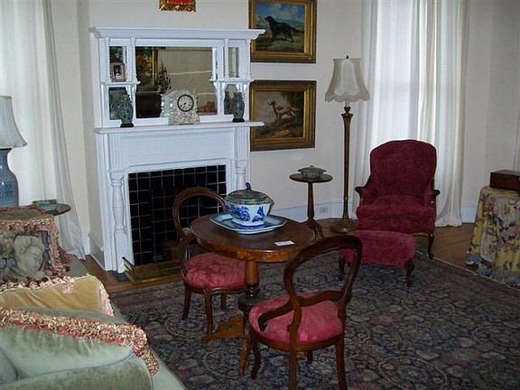 Special features include beautiful hardwood floors throughout the main living areas and ceramic tile in the kitchen and baths. Four ornate fireplaces, ten foot ceilings, and bay window in the living room add character and charm. The kitchen features stainless steel appliances, updated cabinetry with display rack above, breakfast bar and adjoining breakfast area. Long formal dining room.
