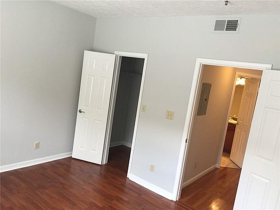 Hardwood floor through the whole house. In a gated Community with swimming pool, tennis amenities down stair. easy access to 75/285 and walk-able distance to Suntrust Stadium. In both bedroom, comes with full bath, ceiling fans, Stainless steel appliances. Windows in the living room were just installed recently. Brand new AC unit installed. Community has tennis court, swimming pool, car wash and Fitness center. Must See. Pet friendly but need extra $350 security deposit per pet. Landlord will pay for HOA and trash.