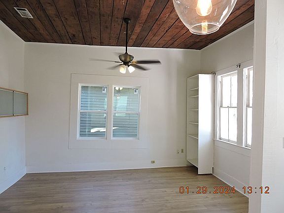 Garden District Cottage. Large front porch with swing. Lots of old house charm and quirks. High ceiling, exposed shiplap ceilings, no carpet, updated wiring, central heat and air. Off street parking in driveway and front yard. Large fenced yard. Great bonus room off one bedroom that would make great office, nursery or studio. New refrigerator and full size stack washer and dryer Storage buildings reserved for owners. $1495 Monthly $1495 Deposit 1 Year Lease