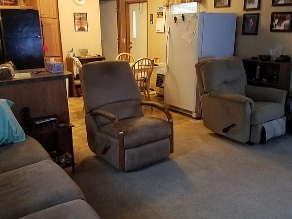 Neat as a pin mobile home with 2 large bedrooms and 2 baths. The living room and kitchen have the open concept. There is a nice deck on the front, to the ground covered carport, and deck on the back. the metal storage building is 10 x 16. Pretty tile floor in the kitchen which has a bar, dish washer, and double sinks.