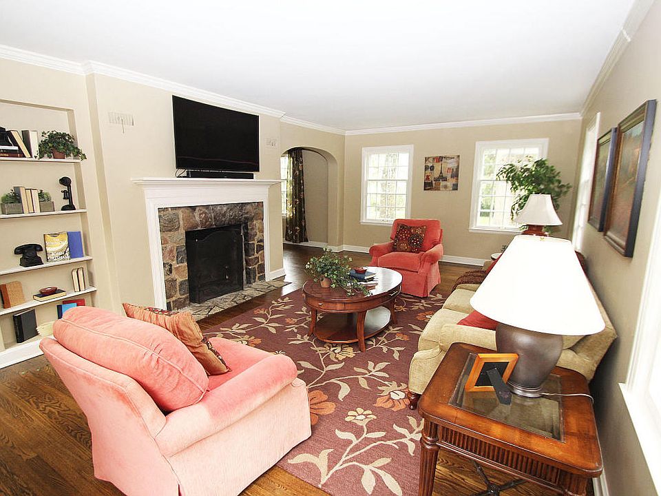 Spectacular Cape 2 story completely remodeled, stunning interior and parklike lot! All hardwood just re-sanded with rich stain. Elegant great room with natural fireplace and sun filled. So much space for any furniture arrangement. Main level office ready for your business furniture! Wonderful kitchen with built in oven/range and room for dining. Main level powder room. Rich wood staircase just re-finished leads to 3 good sized bedrooms. Master bedroom is 18x13! Remodeled bath with rich ceramic tiling and granite top vanity. Private huge yard with towering trees. Won't last!