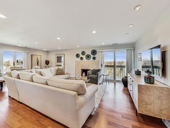 Wow! A sophisticated penthouse corner unit with glorious windows all around! Beautifully renovated throughout. The open floor plan that everyone wants...A Kitchen wall has been removed so it opens to the Dining Room & Living Room & you can prepare a meal while chatting with friends! The Kitchen features a huge granite peninsula with plenty of seating plus table space. There are tons of cabinets plus a built-in buffet with decorative glass doors, a wine rack, drawers for all of your serving pieces + tile backsplash. Sleek GE Profile Stainless-Steel stove, microwave, dishwasher & Samsung French-door fridge complete the look! The Kitchen overlooks the elegant Dining Room and Living Room with dramatic gas Fireplace. Natural light streams from everywhere + there are recessed lights t/o too. The luxurious Primary Suite features a remodeled ensuite bath with dual sinks & a glass door enclosed, tiled shower with bench + a Linen Closet. The spacious Walk-In closet is fabulous. A 2nd Bedroom, currently used as a Den, also has good closet space. The remodeled Hall bath has a tub with glass door, with a 2nd Linen Closet near by. Two closets in the spacious Foyer plus a large pantry closet in the Laundry Room add to the great storage this unit offers. Gorgeous newer wood floors t/o except bedrooms. Awesome Balcony to relax with a good book or enjoy summer BBQs. 2 tandem garage spaces, 24-hour security in a gated community, exercise room, party room, outdoor pool & tennis courts. 5th floor sun deck to visit with family & convenient storage locker on the same floor. Close to Northbrook Ct mall, great restaurants, and Hwy 94 to take you downtown with ease. No pets.