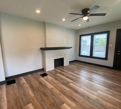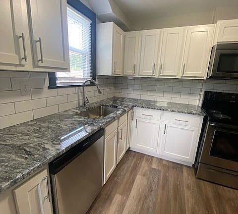 This 3 Bedroom 1.5 bathroom duplex has been completely renovated including central air. There is fresh paint throughout, new plank flooring on the main level and new carpet on the second level. The main level has a spacious living room with a decorative fireplace, spacious dining room and BRAND NEW Kitchen with White Shaker Cabinets, Granite Counters and Stainless Steel Appliances. The upstairs has a brand new bathroom including a shower with subway tile and 3 nice sized rooms with closets. Unfinished basement with washer/dryer hook ups. The backyard has a new fenced yard with an off street parking spot behind it.