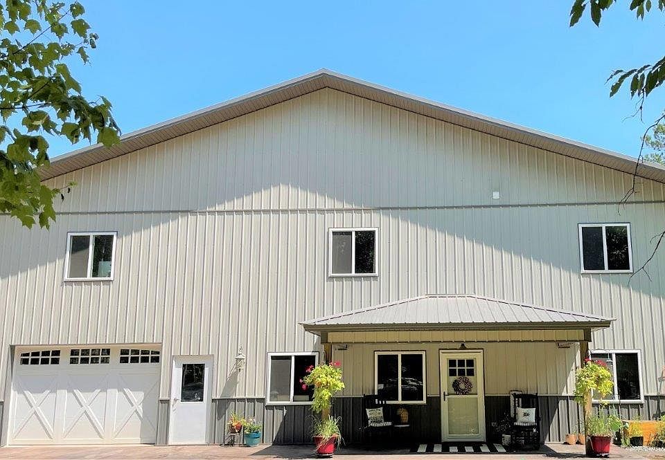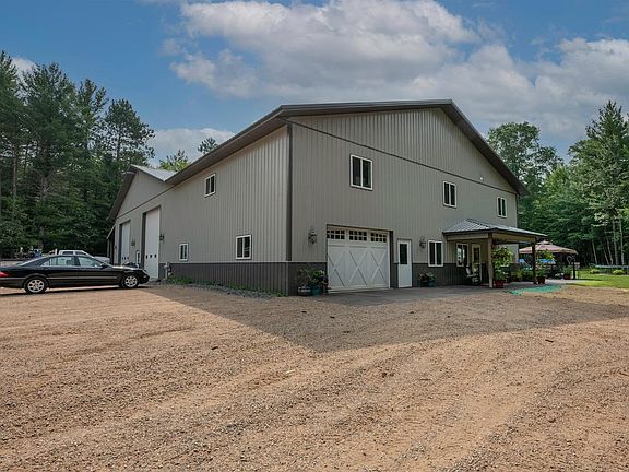 Exquisite Barndominium on 16 acs with 4,800 sf and 5 bd/ 4 ba. This incredible home checks all the boxes from the spacious kitchen w/ high end appliances to the stunning first floor master suite. The second floor includes: family room/game room, crafting room, office, ample storage space & 4 more bds & bath. This is a well-planned & constructed, elegant country retreat which is designed with a blend of old & new. Attached is a workshop which has 20 ceilings and a 12 concrete floor & in floor heating. There is also a half bath & 3 shop sinks. The acreage has trails throughout, fenced raised garden area & newly poured concrete patio. Located in Woodruff, this slice of paradise is only 10 minutes from downtown Minocqua. ATV/UTV & snowmobile trails are right outside the front door. Numerous lakes are a short distance away for boating, fishing, kayaking, swimming & more!