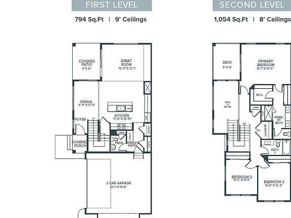 Open concept floor plan with two-story dining roomKitchen with large center island and pantrySpacious covered rear patioLuxurious primary bedroom with private deck, bath and walk-in closetSecond floor laundry