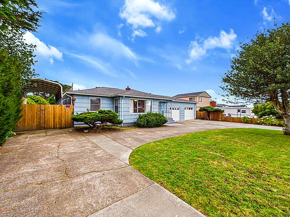 Nice family home with huge back yard. The lot boasts .56 acres with a distant view of Humboldt Bay and a peak a boo view of the Pacific Ocean This 3 bedroom, 2 bath home includes a wonderful south facing sunroom that connects to the family room and the primary bedroom. You will love the original hardwood floors in the living room with a cozy fireplace. The 2 car garage is large enough for storage or a workshop. Roof and water heater were replaced in 2019. The home is well maintained and has seen multiple upgrades over the years. The large open back yard is fully surrounded by new fencing and would be ideal for gardening, pets, or your own touches. There is covered RV parking behind a closed gate on one side of the house as well as a chicken coop and large dog house and dog run.